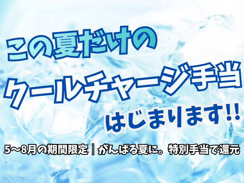 給与 | 時給1,180円 給与詳細 基本給:時給 1180円 ■交通費全額支給! / 5/20~8月のみの 期間限定特別手当 「クールチャージ手当」あり! ▼ 1出勤ごとに¥400円 ➡月収に換算すると なんと約¥8,000円UP✨ \ 【給与例】 給与例 【月収例】※週3日勤務の場合 1,180円×実働7時間45分×月12日 =月収11万円可能✨ 交通費全額支給! ⭐クールチャージ手当有の期間なら 月収20万円も可能! |